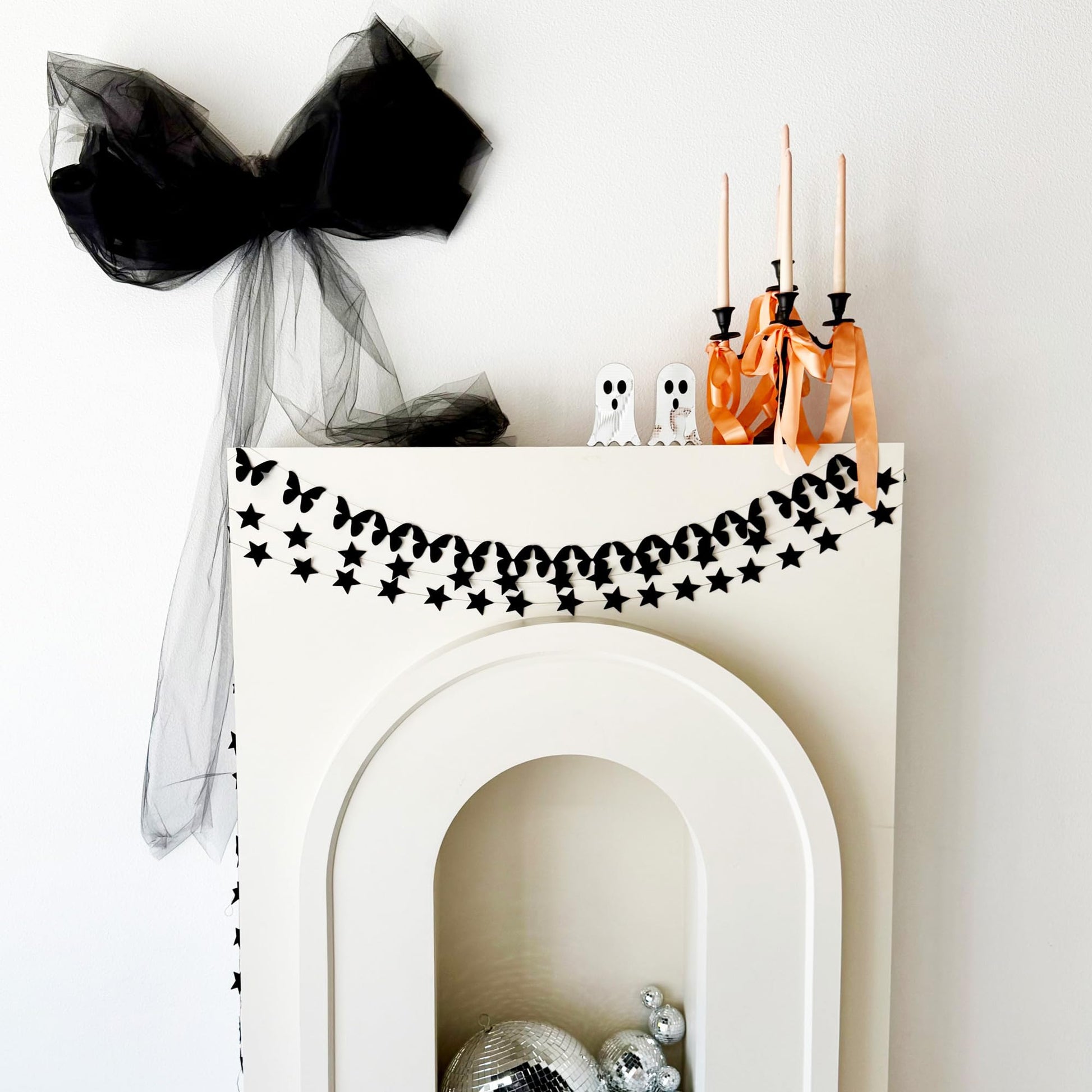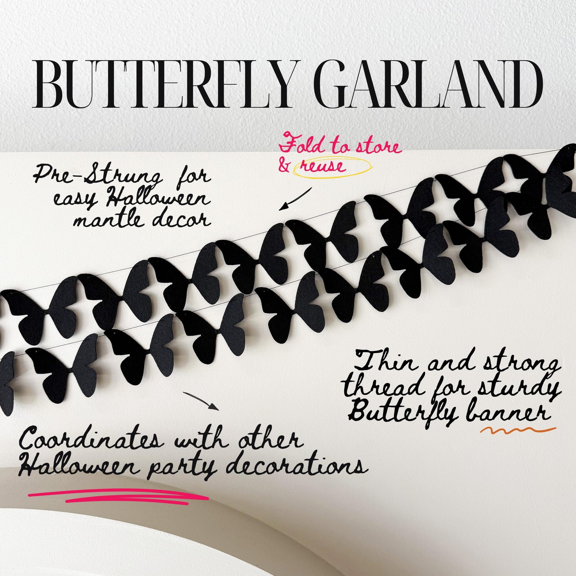 Black Butterfly Garland, Pre-Strung Felt Butterfly Birthday Decorations, 9 feet prestrung Felt Hanging Halloween Party Decorations