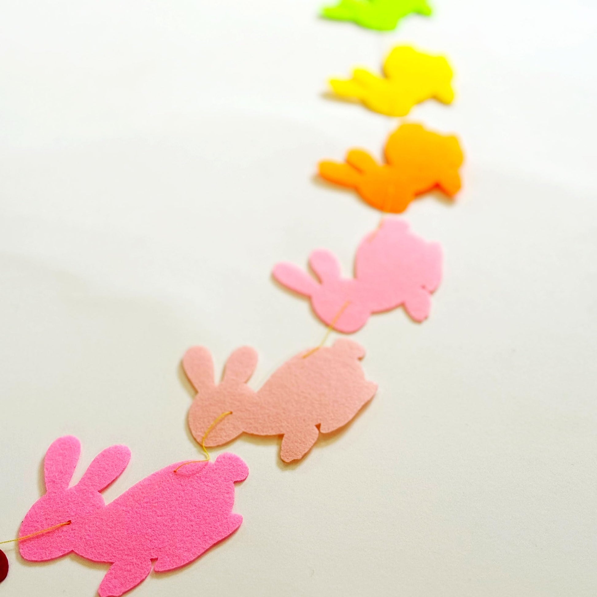 - Vibrant rainbow Easter Bunny decorations: Make your bunny baby shower decor, bridal showers and bunny birthday decorations the best with our bright rainbow themed spring felt garland.