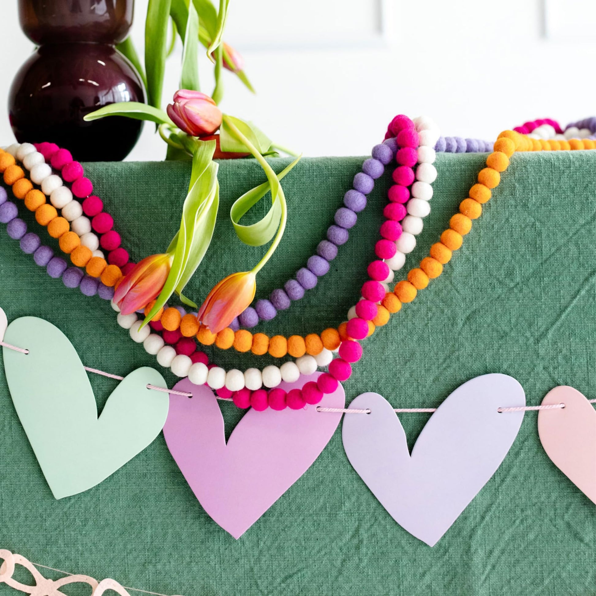 - Quality Heart Decor - Heart party decorations and Valentine banner to keep and use for years to come in boho pastel hues for bedroom, dorm room decor, kitchen, office, or classroom heart decor.