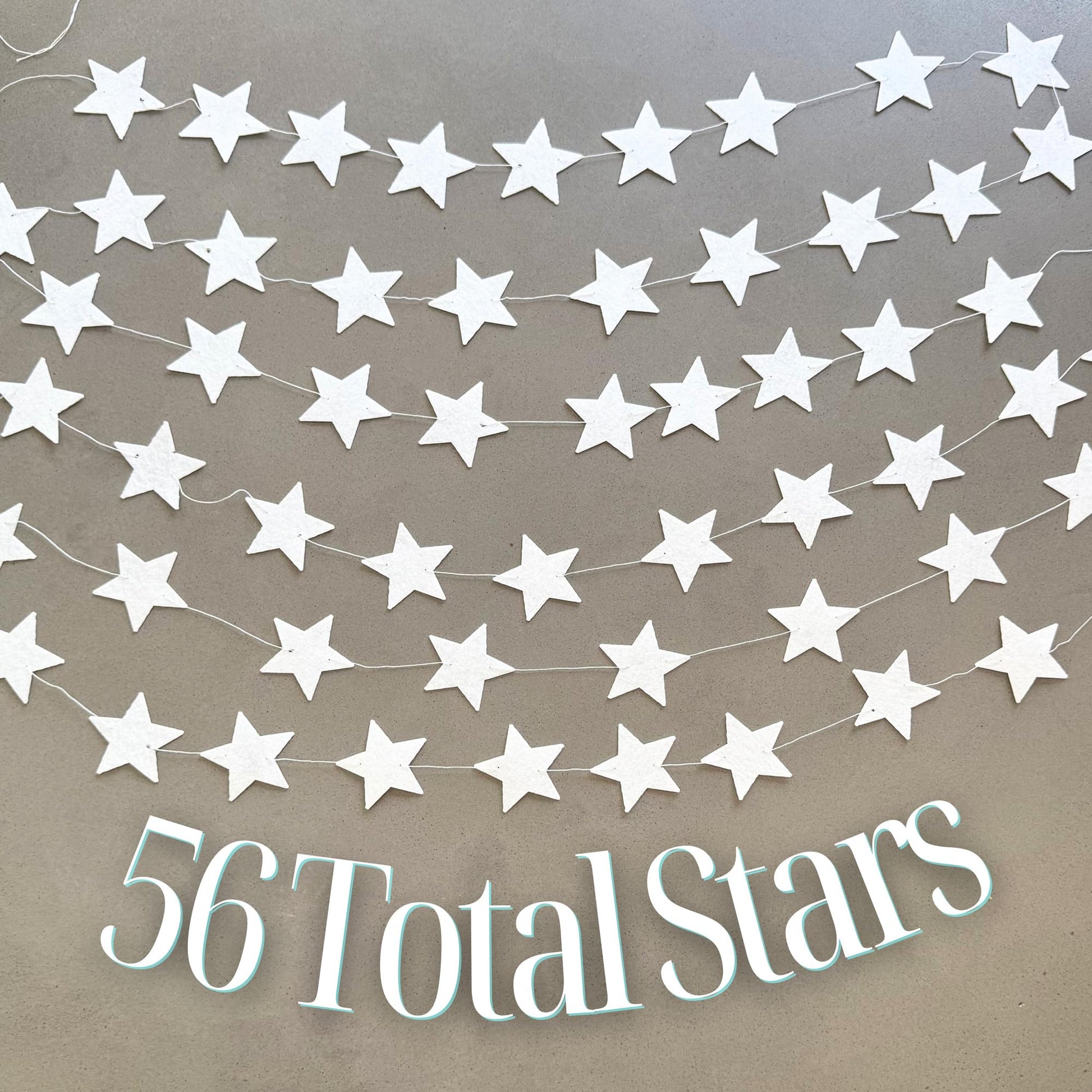 - Handmade Quality With A Soft Touch - White felt garland designed by hand in the USA, this white felt star garland features a bright white hue and felt texture that adds a modern, minimalist flair to your star party decor. It's durable, reusable, and made to last from twinkle little star baby shower decor, right onto the starry night or space party decorations.
